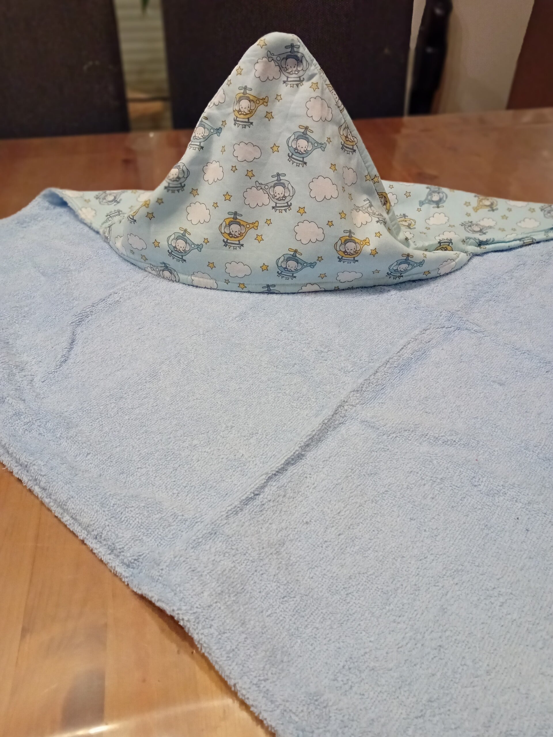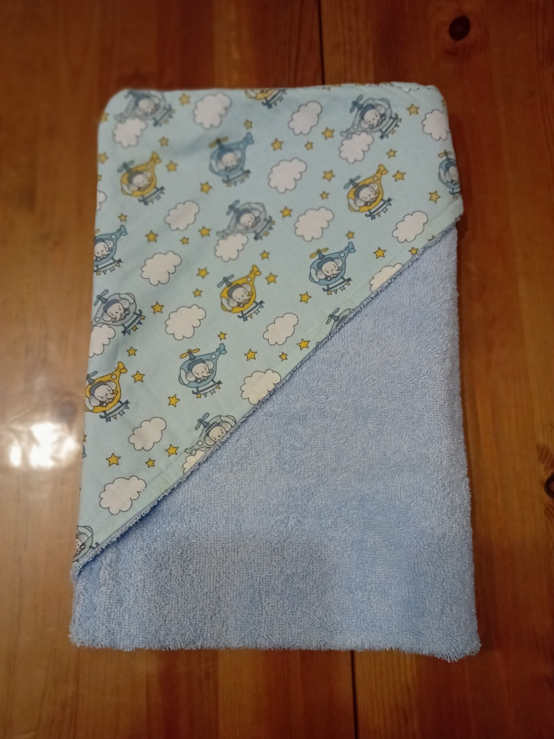 Coton motif hélicoptère + éponge bleue ciel