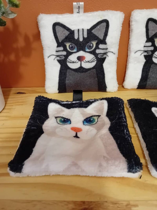 Lot de 4 carrés lavables motif chat